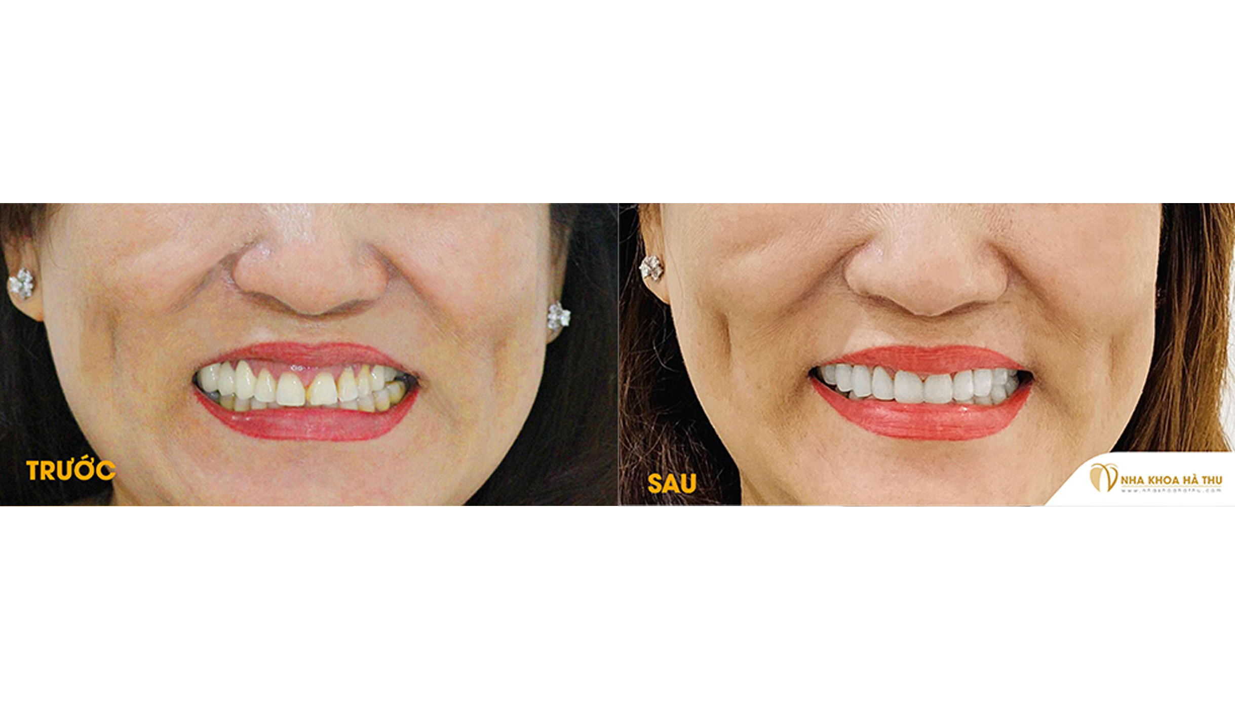 Sau khi thăm khám, Nha khoa Hà Thu tiến hành điều trị cho chị Thảo với dịch vụ thẩm mỹ nụ cười. chúng tôi kết hợp và thực hiện tuần tự các bước vi phẫu tái tạo nướu, điều chỉnh khớp hàm, tháo bỏ và bọc sứ mới cho các răng hỏng và veneer sứ, lấy lại vẻ đẹp hoàn chỉnh cho toàn bộ hàm răng. Nhờ kinh nghiệm hơn 30 năm của Bác sĩ Hà, chị Thảo không bị đau, tâm lý thoải mái trong suốt lộ trình.