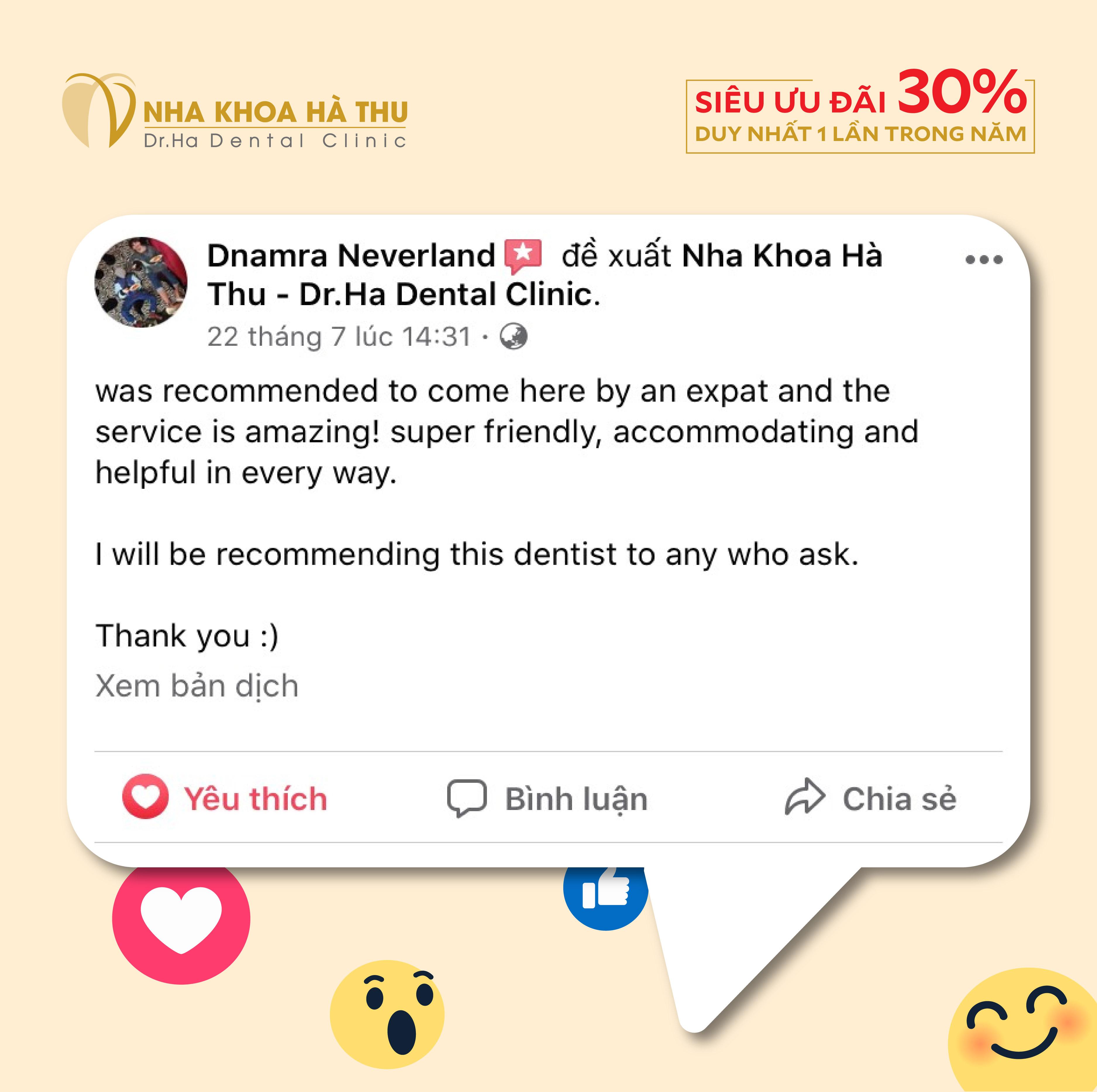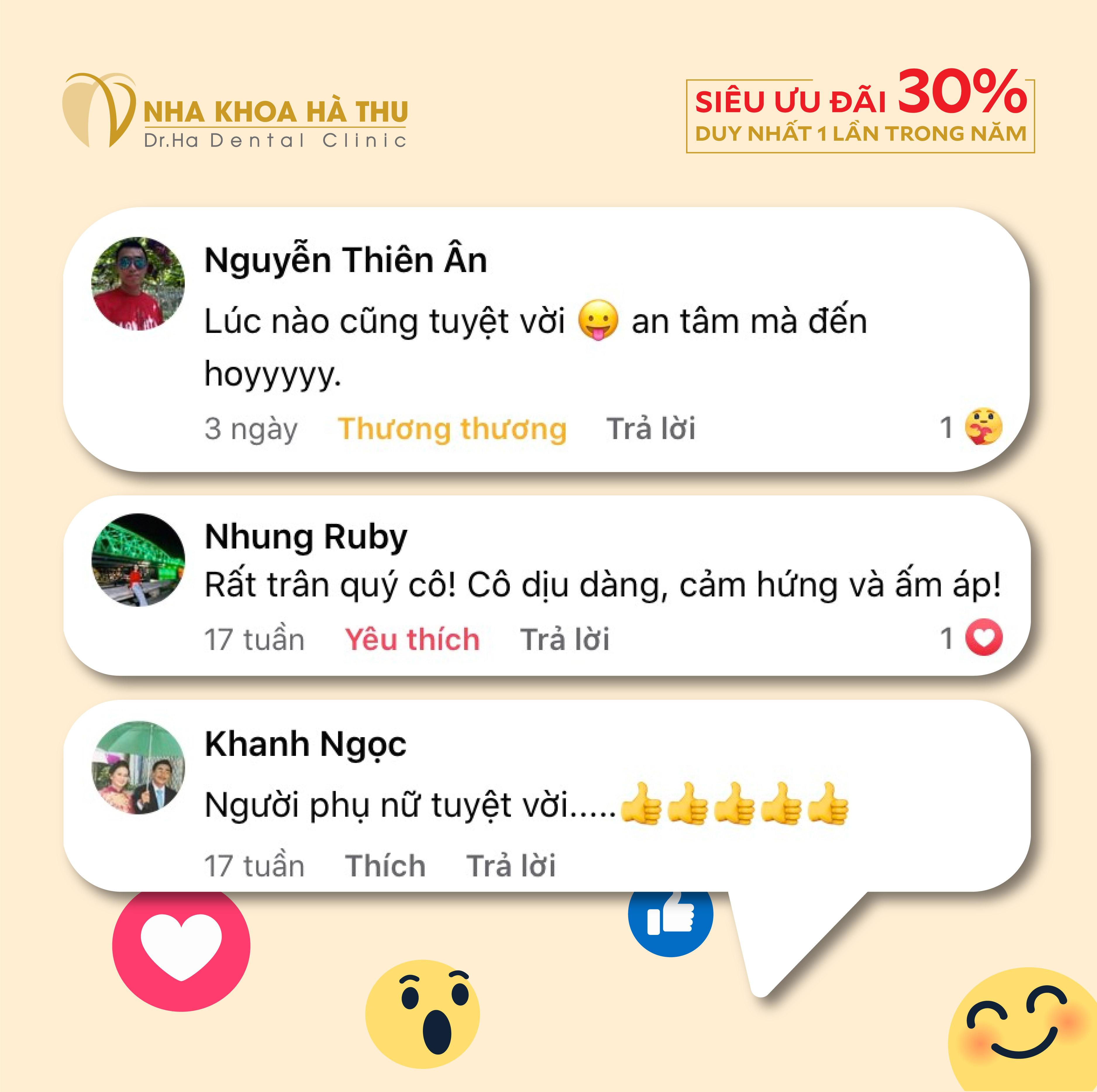 Sự hài lòng, niềm hạnh phúc của khách hàng là động lực để đội ngũ bác sĩ Nha Khoa Hà Thu cố gắng không ngừng trong suốt 20 năm qua.