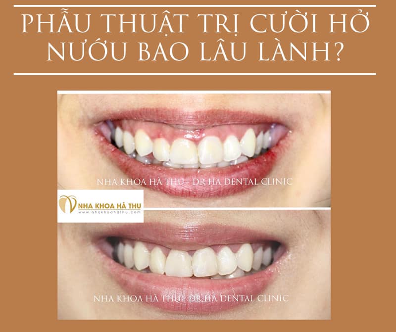 Tại Nha khoa Hà Thu, quá trình cắt nướu diễn ra khá nhanh chóng. Trung bình một ca điều trị chỉ mất 30 PHÚT - 1 GIỜ (tuỳ số lượng răng) và mức độ khó chịu kéo dài ÍT HƠN 5 GIỜ => Khách hàng có thể làm việc bình thường ngay trong ngày.