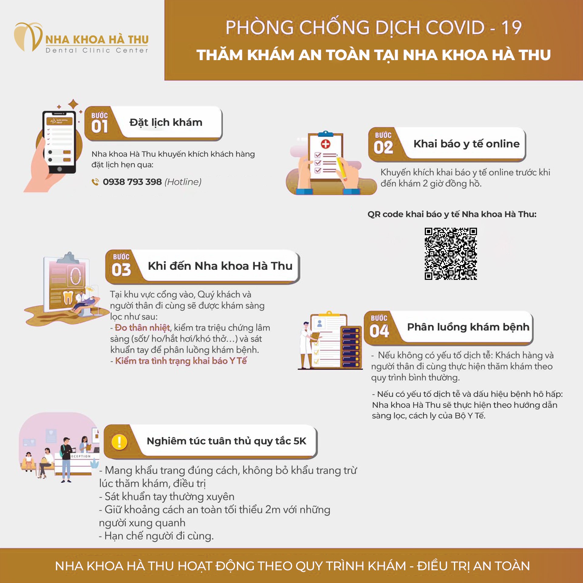 - Nếu khách hàng và người đi cùng không có các yếu tố nguy cơ dịch tễ và dấu hiệu lâm sàng, Nha khoa Hà Thu sẽ hướng dẫn đăng ký khám bệnh theo quy trình bình thường.