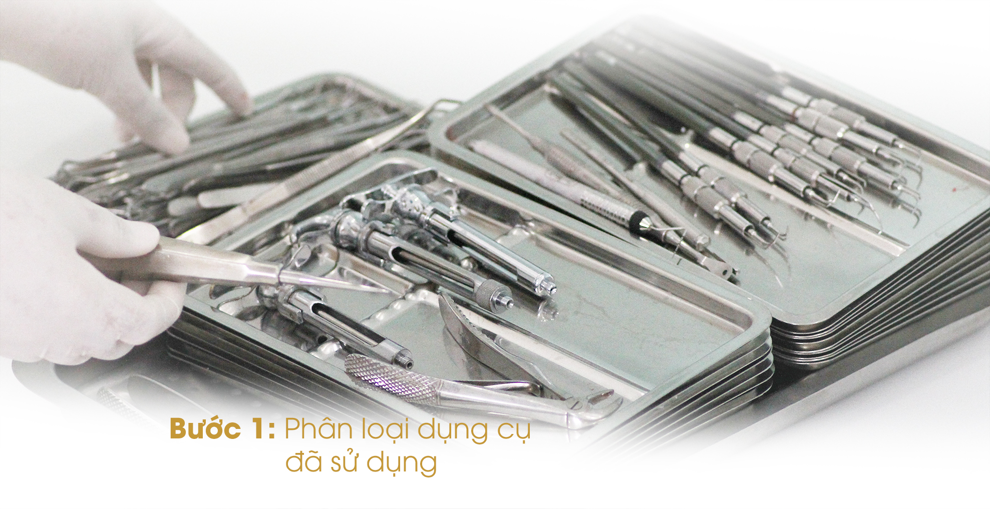 Dụng cụ nha khoa sau khi sử dụng được thu dọn và phân loại gọn gàng trước khi vệ sinh và khử khuẩn. Việc phân loại giúp nhân viên kiểm tra chính xác số lượng cũng như phát hiện những dấu hiệu hư hỏng cần được thay mới nếu có, từ đó có sự chuẩn bị chu đáo nhất cho mỗi ca điều trị của bệnh nhân.