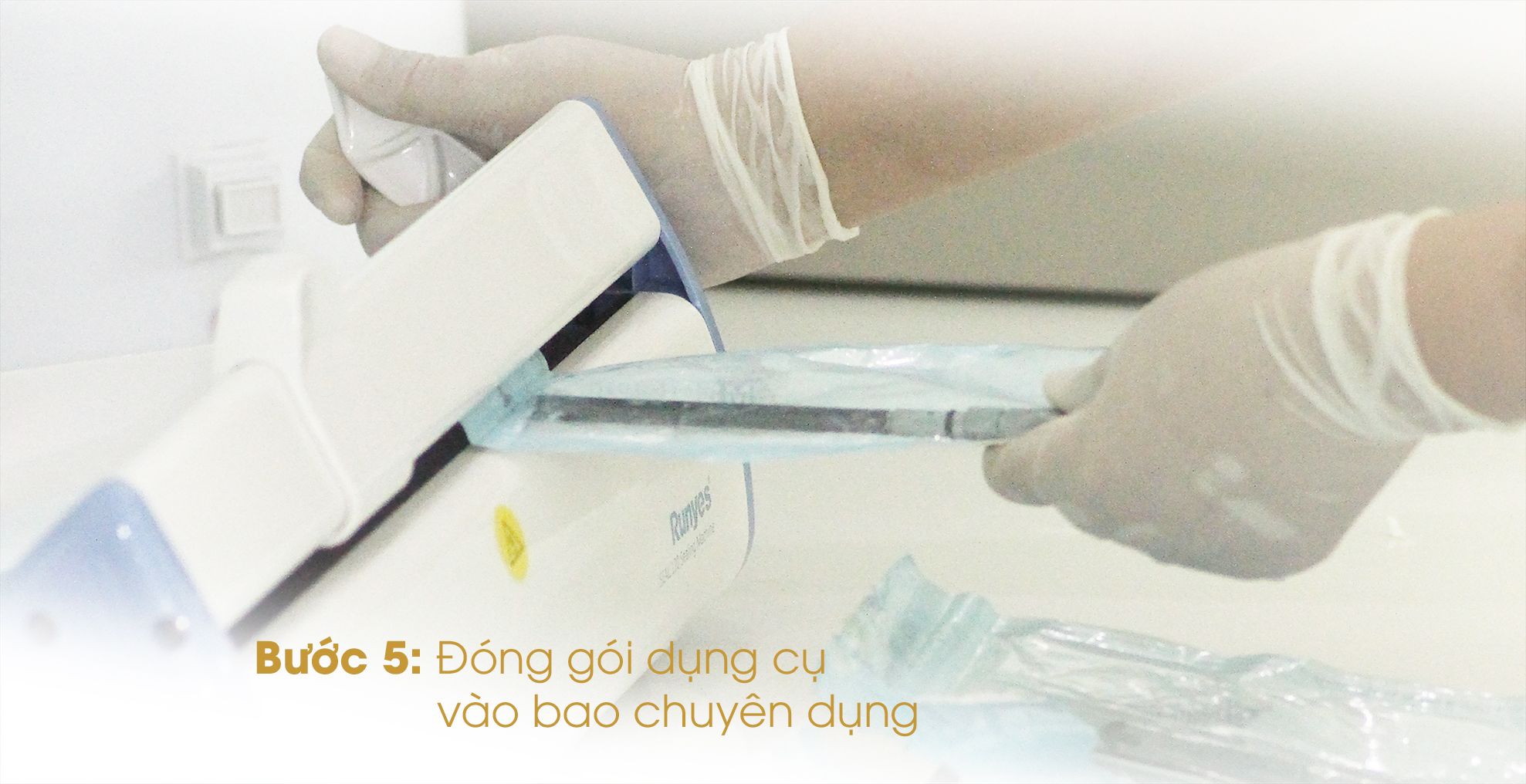 Mỗi dụng cụ được đóng gói vào 1 bao chuyên dụng, dập kỹ 2 đầu trước khi vô trùng. Bao chuyên dụng cách ly dụng cụ với môi trường không khí bên ngoài, điều này rất quan trọng. Với bao chuyên dụng, sau khi xử lý vô trùng dụng cụ sẽ được tách biệt với không khí, đảm bảo hiệu quả vô trùng.