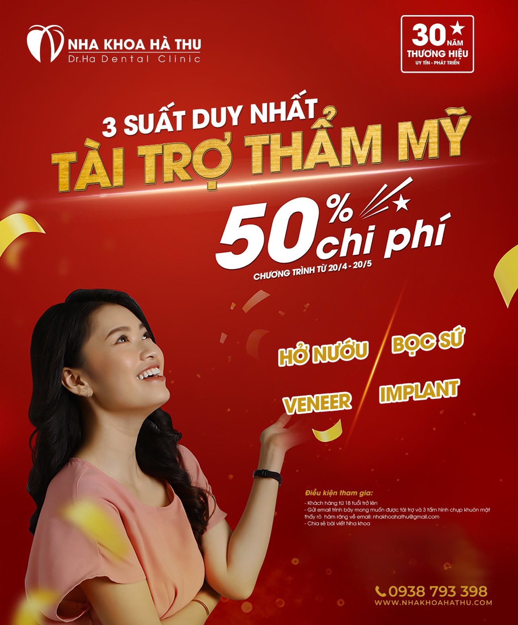 Từ trái tim yêu thương, Nha khoa Hà Thu dành tặng 3 SUẤT TÀI TRỢ 50% CHI PHÍ THẨM MỸ NỤ CƯỜI đến tất cả Quý khách hàng.