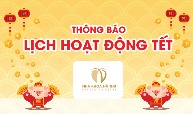 Dịp Tết Kỷ Hợi 2019, Nha Khoa Hà Thu nghỉ từ 11h00 Thứ Bảy (2/2 - Tức 28 tết). Hoạt động lại 08h00 Thứ Ba (12/02 - Tức Mùng 8). Kính thông báo...